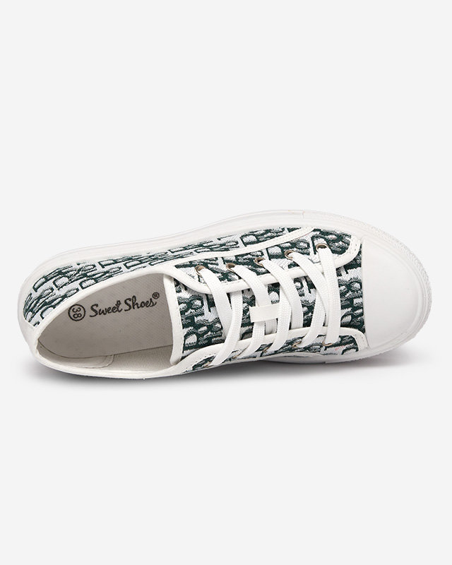 OUTLET White - juodi moteriški sportbačiai su žalia Sohop spauda - Avalynė