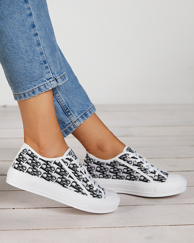 - Stilingi moteriški sportbačiai, sportbačiai, ant storesnio pado. Modelis pagamintas iš medžiaginės medžiagos. Suvarstoma viršutinė dalis. Batai dekoruoti raštu. Puikus priedas prie jūsų kasdienės aprangos! Pastaba: gaminio medžiaga pakitusi spalva.