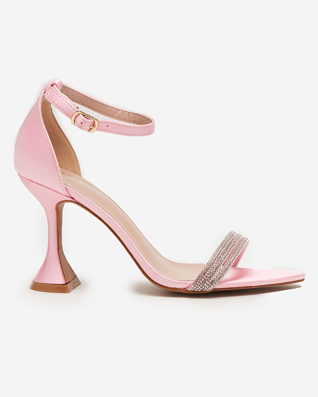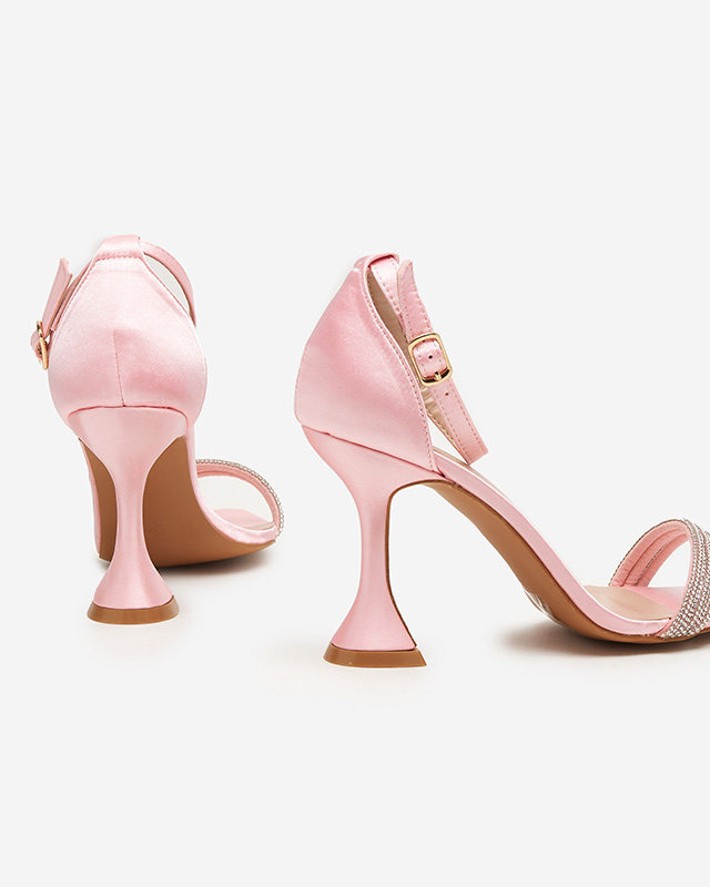 Rožinės moteriškos basutės ant aukšto kulno su dekoratyviniais kubiniais cirkoniais Manestri - Avalynė