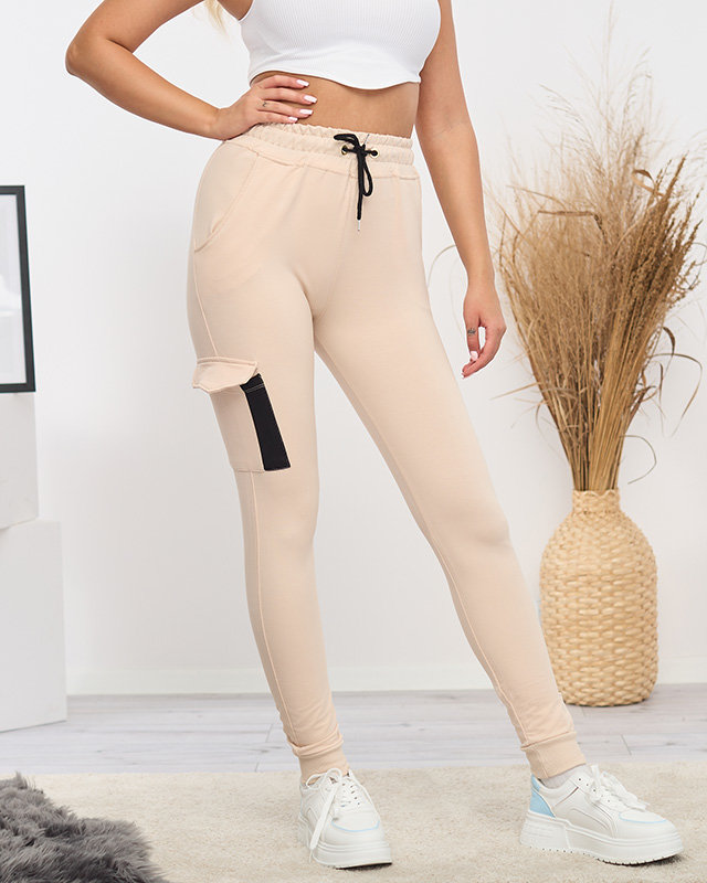 Moteriškos smėlio spalvos medvilninės sportinės kelnės - Drabužiai