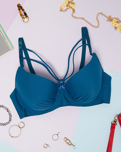 Moteriška paminkštinta liemenėlė su turkio spalvos juostelėmis - Apatiniai drabužiai