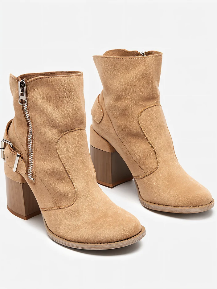 Šviesiai rudi eko zomšiniai moteriški batai ant stulpelio Emrica - Avalynė