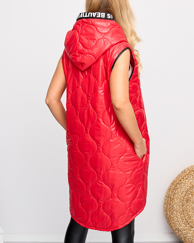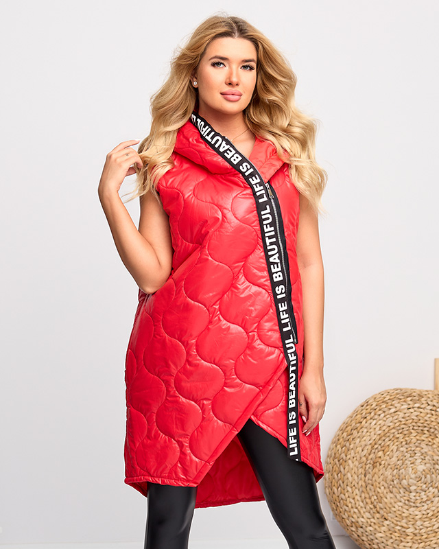 Raudona ilga dygsniuota liemenė su užrašais - Drabužiai