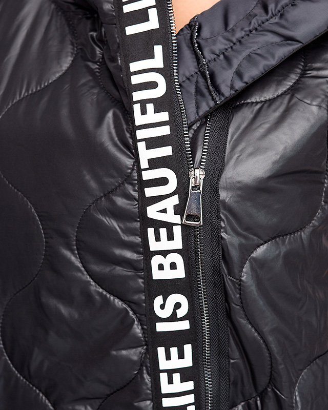 • Graži moteriška ilga liemenė dygsniuota apdaila - puikiai tiks rudens sezonui. Be rankovių užsegamas užtrauktuku, turi gobtuvą, dvi kišenes. Laisvalaikio stiliaus modelis, puoštas užrašais! PASTABA: Matavimo tikslumas (+/-) 1 cm.