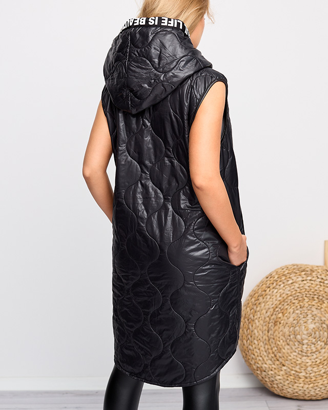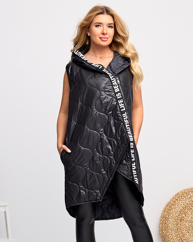 Juoda ilga dygsniuota liemenė su užrašais - Drabužiai