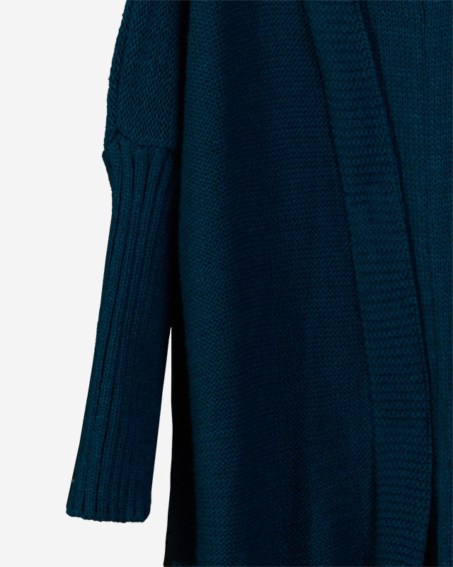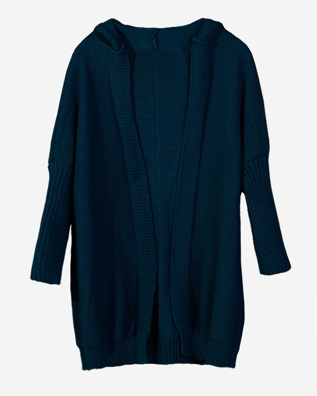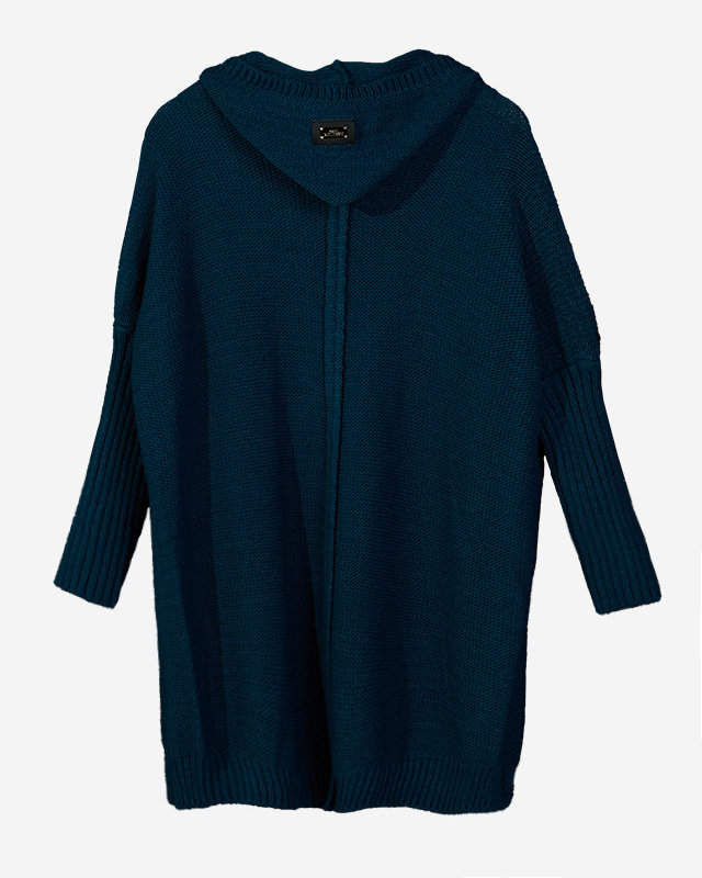 Turkio spalvos moteriškas ilgas megztinis su gobtuvu - Drabužiai