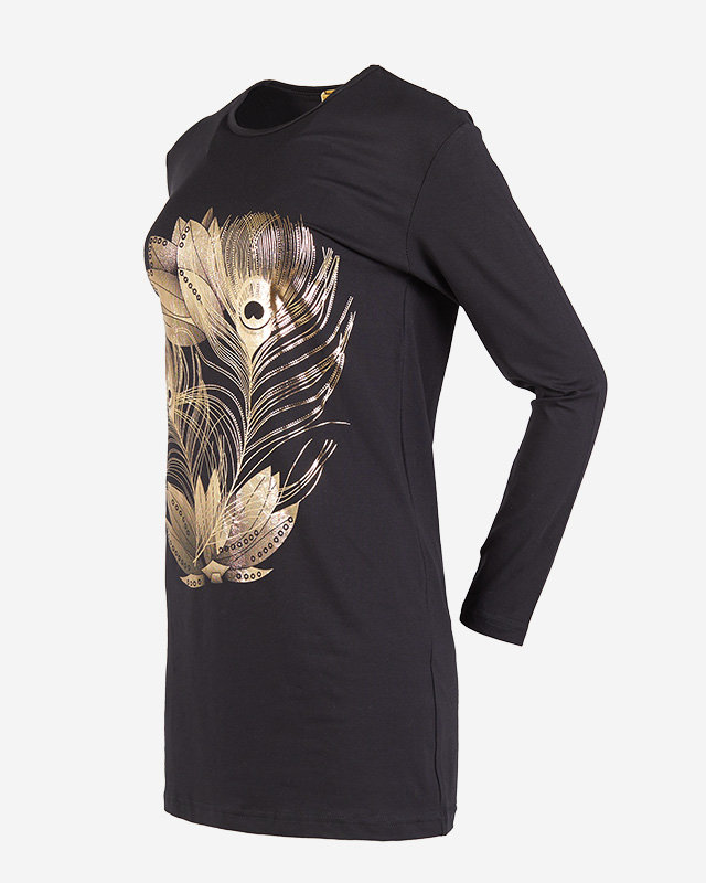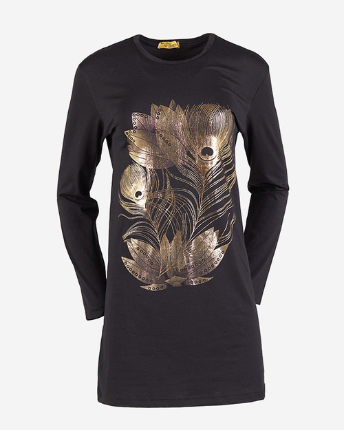 Moteriška juoda tunika auksinėmis gėlėmis - Drabužiai