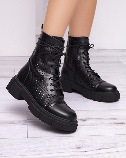 Moteriški juodi ažūriniai aukštakulniai batai Rolika - Avalynė