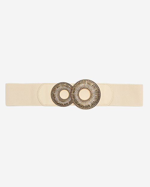 Smėlio spalvos elastingas diržas su didele auksine sagtimi - Priedai