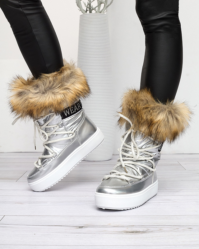 Moteriški sidabriniai lakuoti sniego batai Fursav - Avalynė