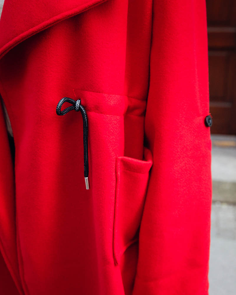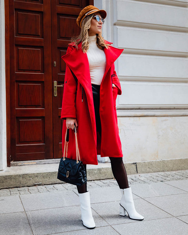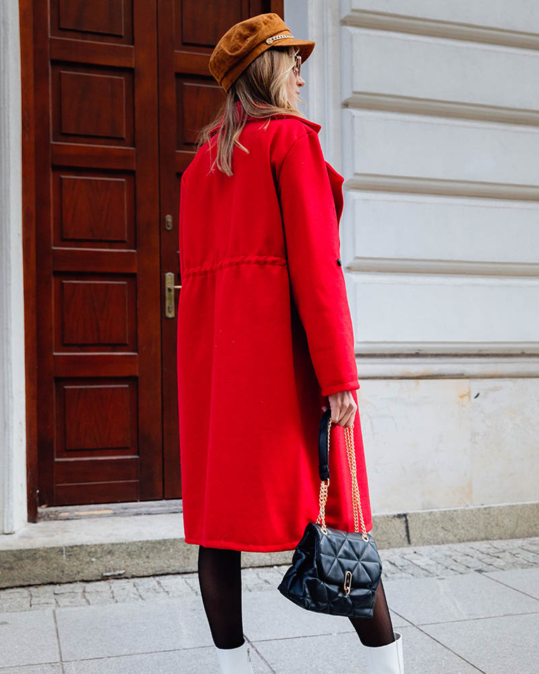 Raudonos spalvos moteriškas ilgas paltas be užsegimų - Drabužiai