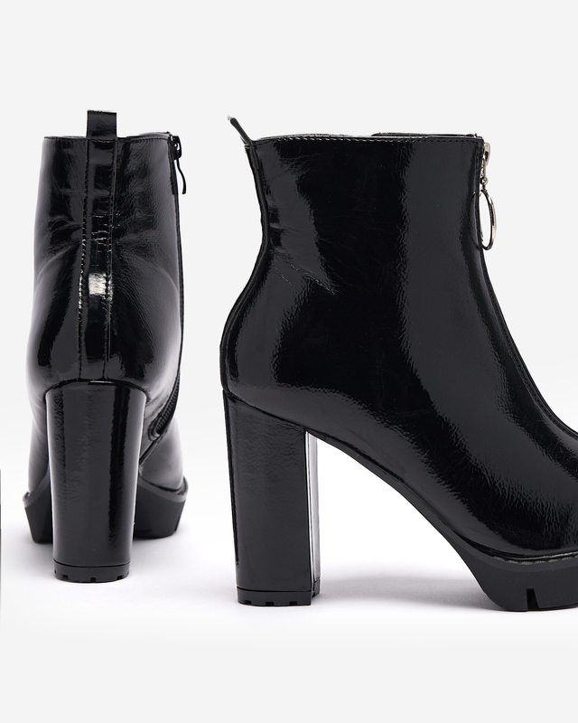 - Moteriški aukštakulniai bateliai su platforma. Modelis pagamintas iš lakuotos ekologiškos odos. Viršutinė dalis užsegama užtrauktuku. Vidus užpildytas minkštu kailiuku. Be to, dekoratyvinis užtrauktukas bato priekyje. JUODI APŠILTINTI BATAI MOTERIMS FALLI