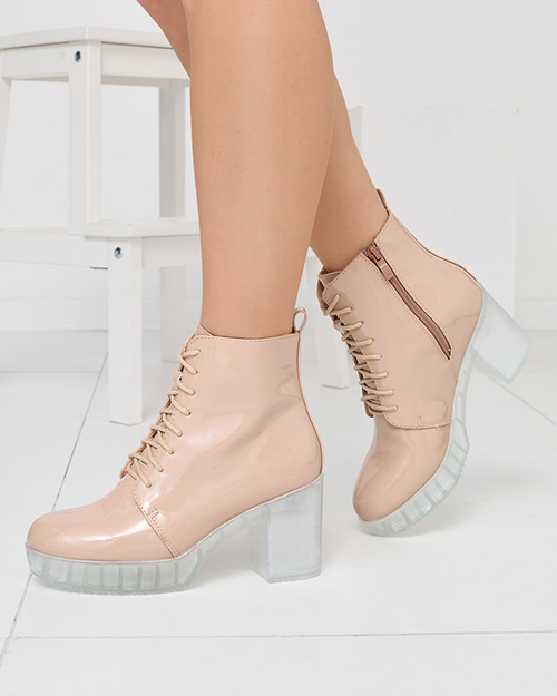 Smėlio spalvos moteriški lakuotos odos bateliai Idika - Avalynė