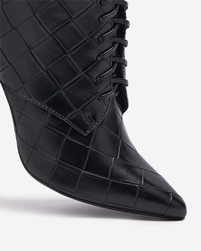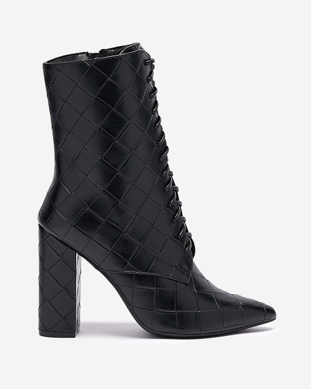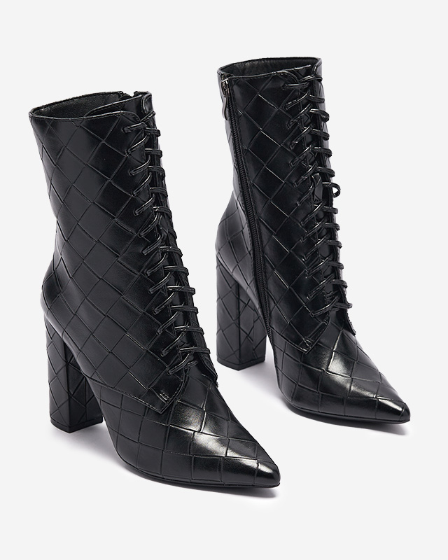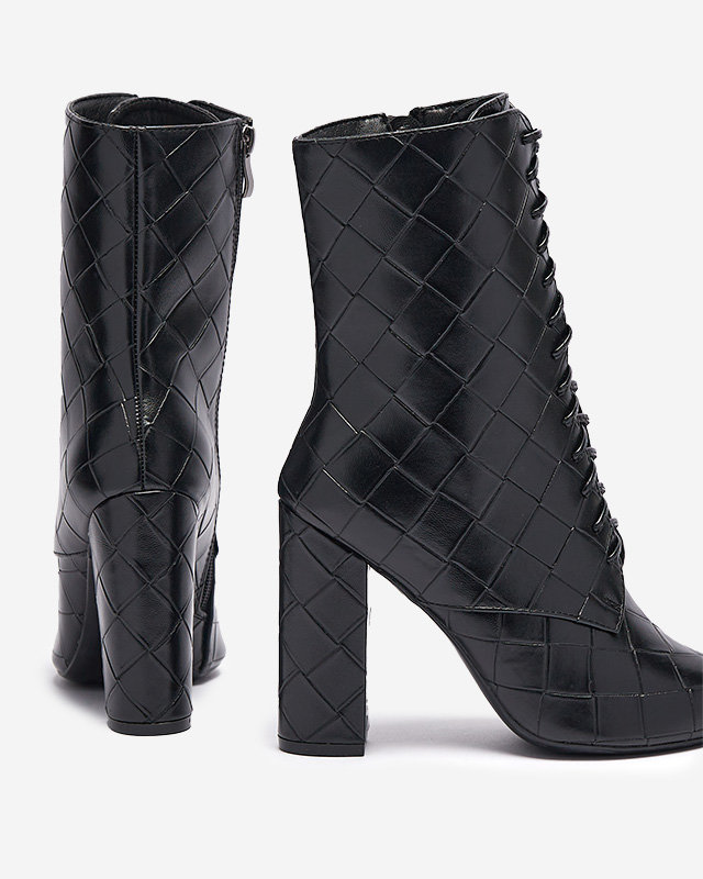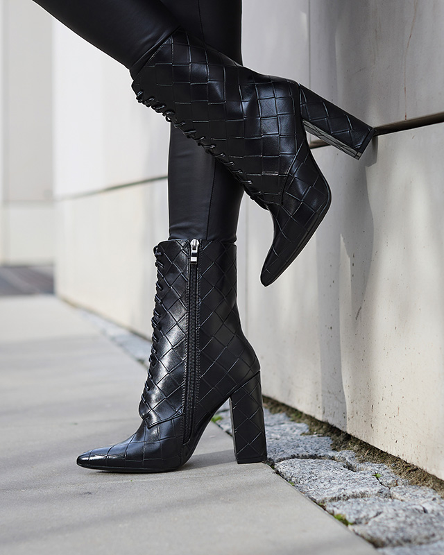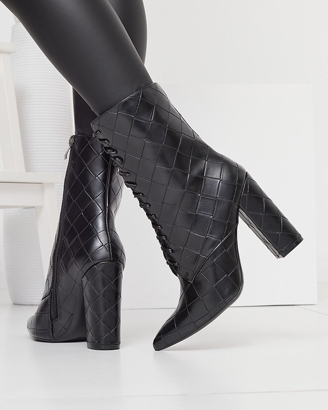 Juodi moteriški batai su įspaudais ant kulno Vedika - Avalynė