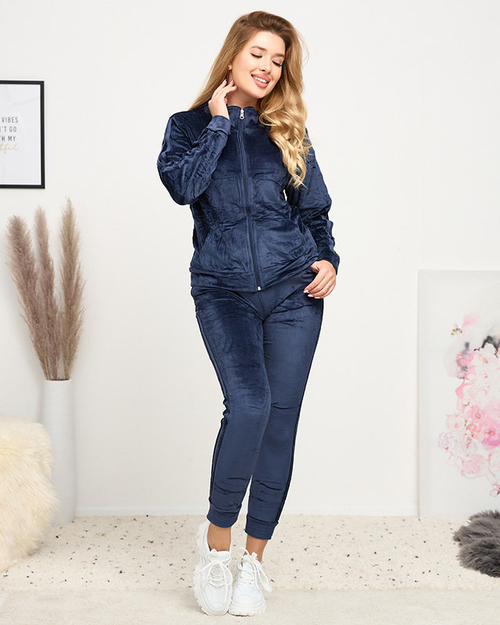 Moterų tamsiai mėlynos spalvos izoliuotų sportinių kelnių komplektas su dryžiais - Drabužiai