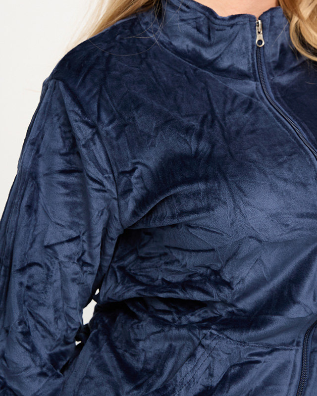 - Moteriško paminkštinto sportinio kostiumo komplektas su dryžiais, pagamintas iš a la veliūrinės medžiagos. Megztinis su kišenėmis užsegamas užtrauktuku, Kelnės su dviem kišenėmis, turi elastinę juostelę ties juosmeniu ir kojų apačioje. PASTABA: Matavimo t