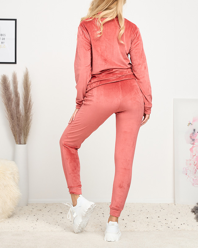 - Moteriško paminkštinto sportinio kostiumo komplektas iš a'la veliūrinės medžiagos. Megztinis su kišenėmis užsegamas užtrauktuku, Kelnės su dviem kišenėmis, turi elastinę juostelę ties juosmeniu ir kojų apačioje. PASTABA: Matavimo tikslumas (+/-) 1 cm.