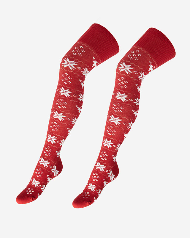 Bordo spalvos kalėdinės moteriškos kojinės virš kelių - apatinis trikotažas