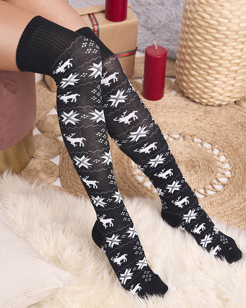 Moteriškos kalėdinės kojinės virš kelių, juodos spalvos - apatinis trikotažas