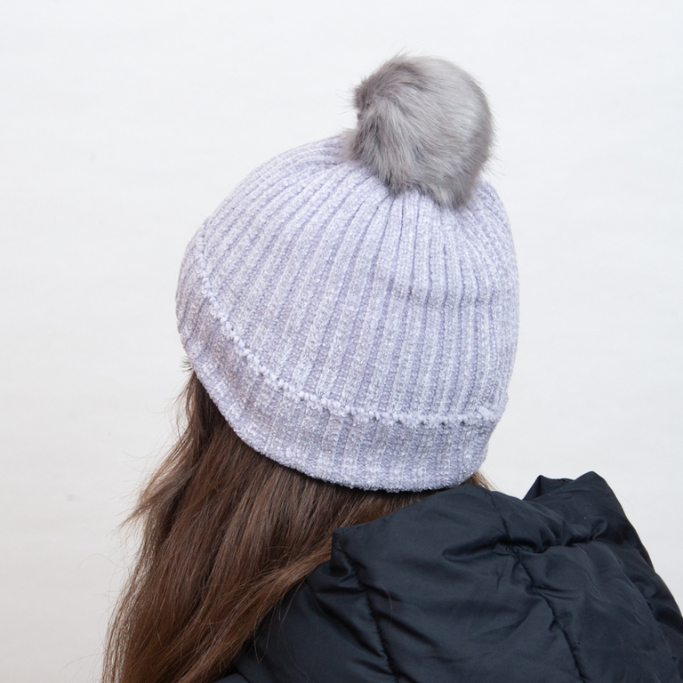 - Graži moteriška apšiltinta žieminė kepurė, pagaminta iš megzto audinio su veliūro apdaila. Modelis su minkštu kailiniu pamušalu, papuoštas juostelėmis šonuose ir puriu atitinkamos spalvos pomponu. Puikiai tinka šaltoms ir žiemos dienoms!