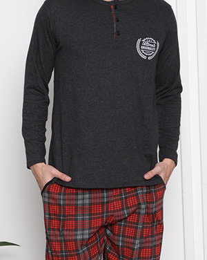 Vyriška pižama su tamsiai pilkai raudonos spalvos raštu - Apranga