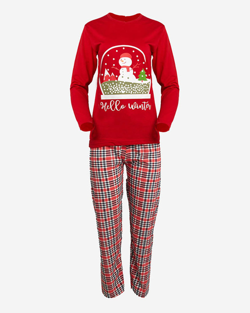 Raudona moteriška 2 dalių pižama su sniego žmogumi- Apranga