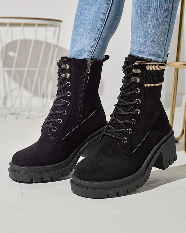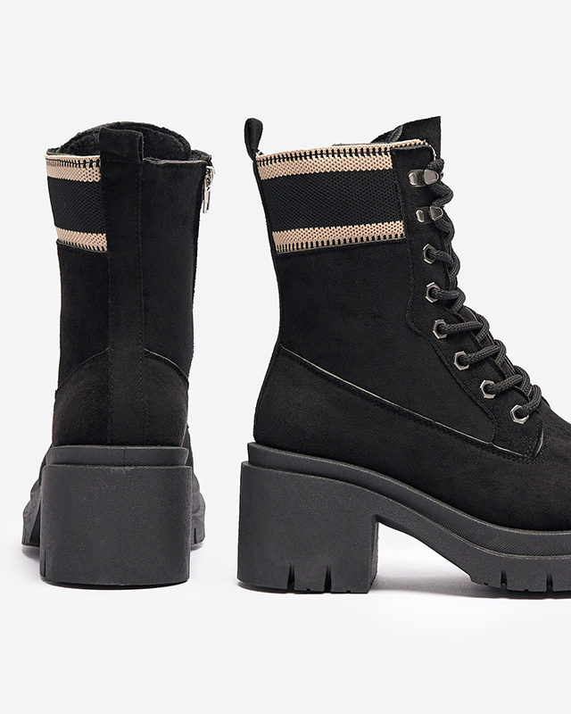 - Švelniai apšiltinti stiletto trapper batai, pagaminti iš zomšos ekologiškos odos. Vidus išklotas minkštu kailiu. Modelis su užtrauktuku, papildomai įrengti raišteliai. JUODI APŠILTINTI BATAI TRAPERIAI KOIDOO