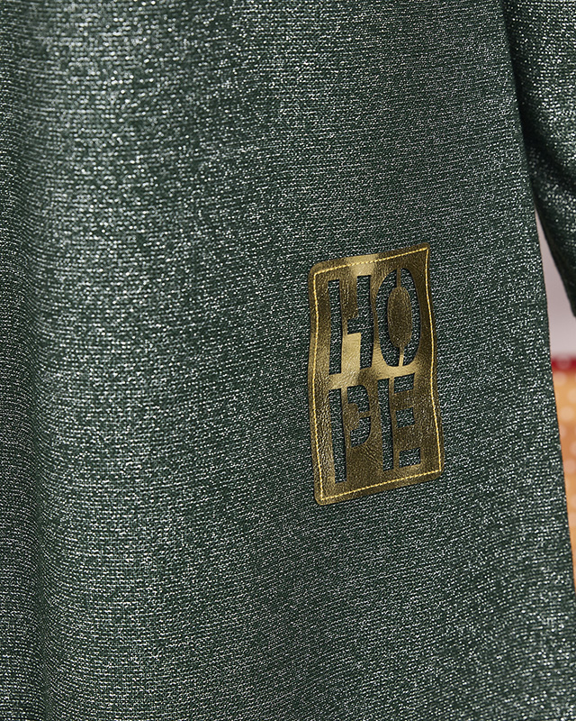 Tamsiai žalia moteriška suknelė su sidabriniais siūlais ir asimetriška apačia - Apranga