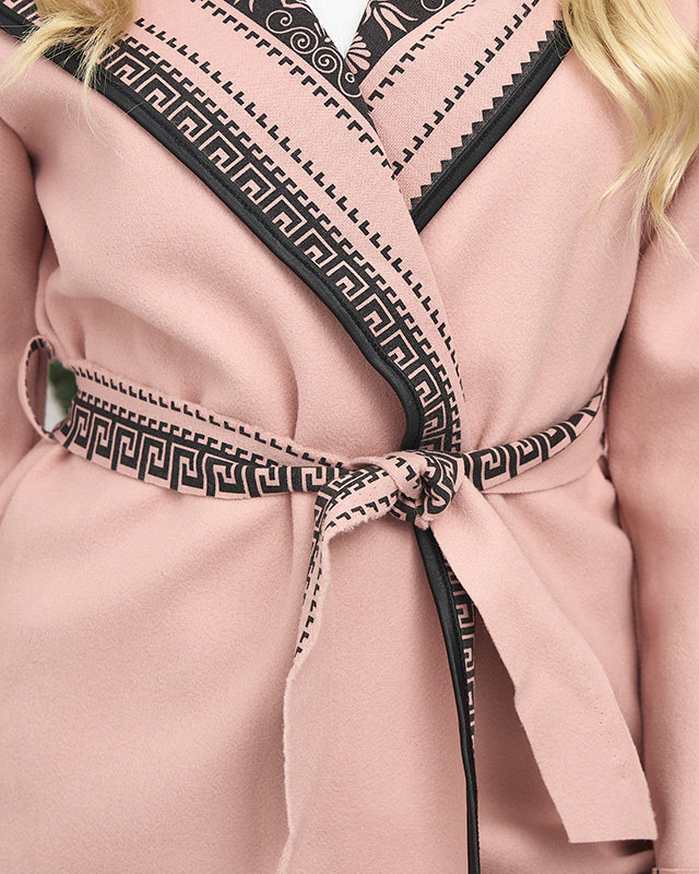 Rožinis moteriškas paltas su ornamentu - Apranga