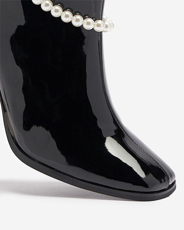 - Moteriški aukštakulniai, modelis iš lakuotos eko odos. Viršutinė dalis su užtrauktuku, centras užpildytas minkštu kailiuku. Be to, nuimamas papuošimas ant batviršio. JUODI APŠILTINTI MOTERIŠKI BATAI RASSLA
