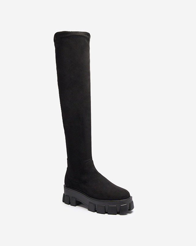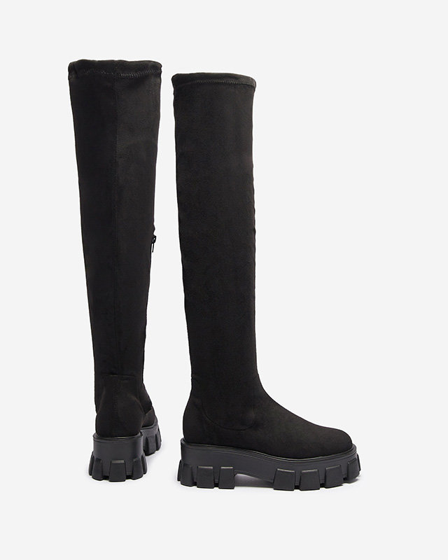 OUTLET Juodi moteriški batai virš kelių storesniu padu Amerita- Footwear