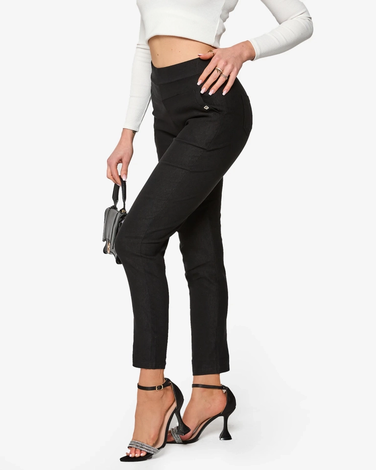 - Stilingos moteriškos teglingo kelnės, pagamintos iš elastingo audinio. Modelis turi platų elastinį juosmenį ir 4 užsegamas kišenes. Puikiai tinka dėvėti kasdien! Matavimo tikslumas (+/-) 1 cm.