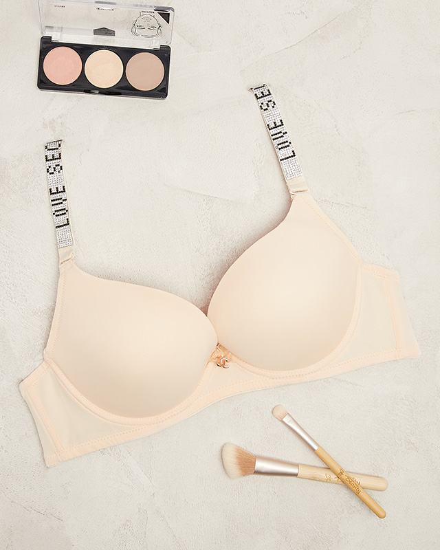 Smėlio spalvos vienspalvė liemenėlė su dekoruotomis petnešėlėmis - Apatinis trikotažas