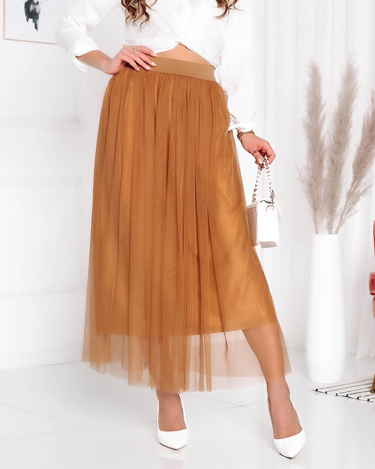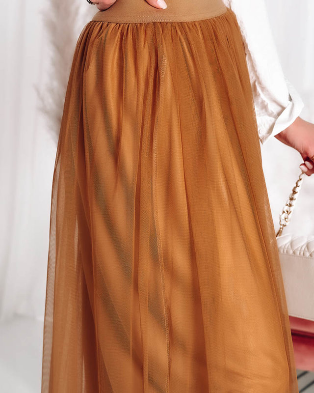 Šviesiai rudas moteriškas dvisluoksnis midi ilgio sijonas Drabužiai