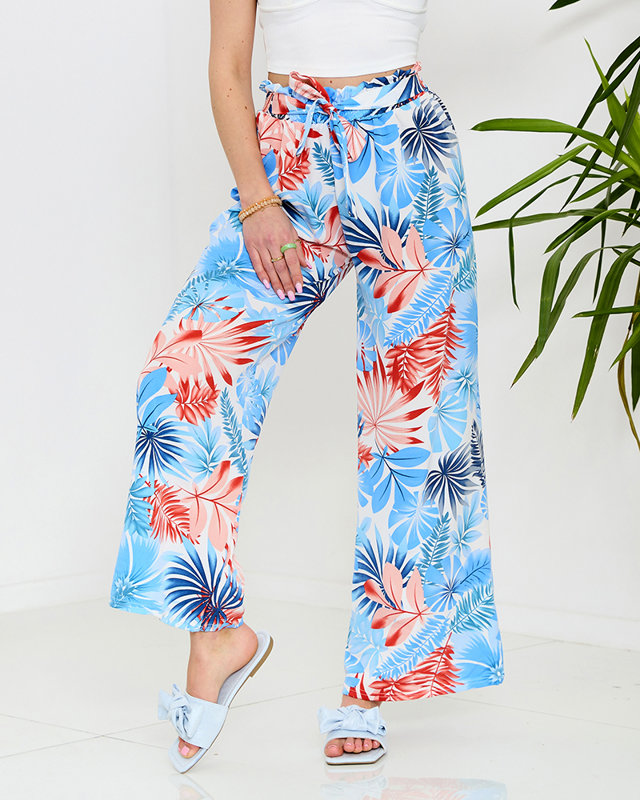 Mėlynos moteriškos palazzo kelnės su gėlių raštais - Drabužiai