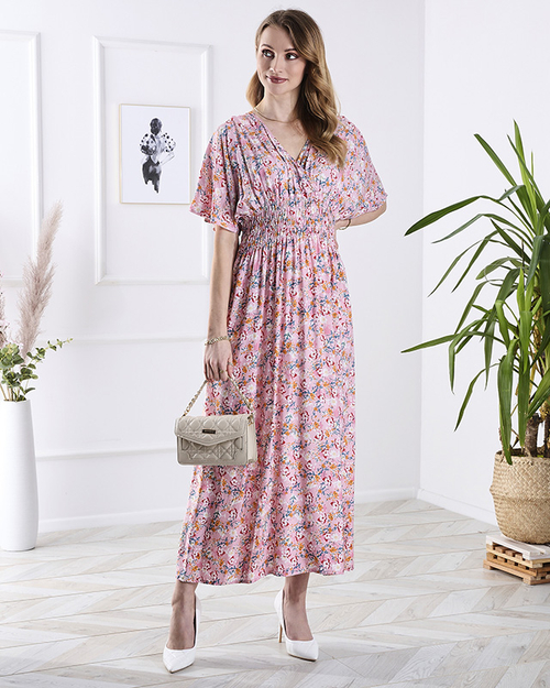 Rožinė moteriška midi suknelė su gėlių raštais - Apranga