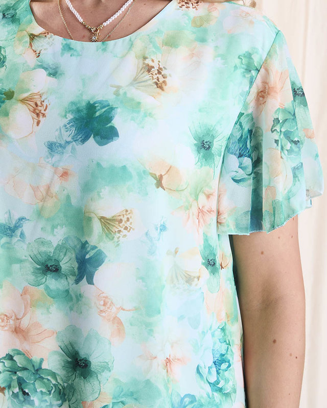Žalios spalvos moteriška suknelė iki kelių su raštu ir raukiniais - Drabužiai