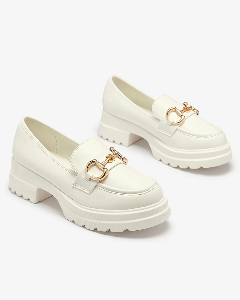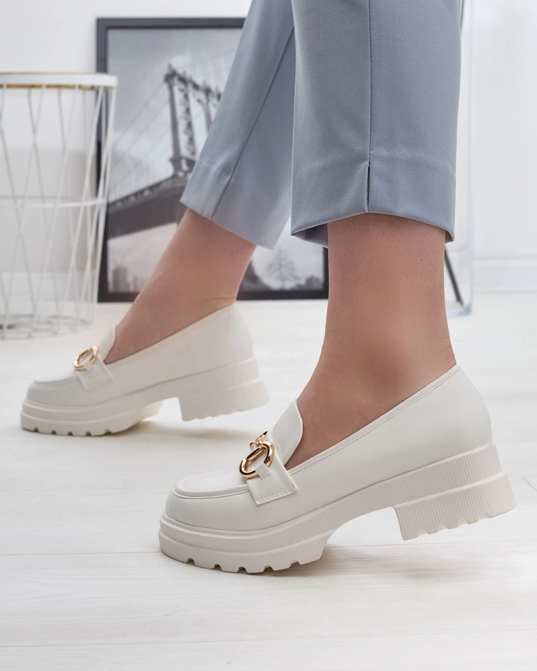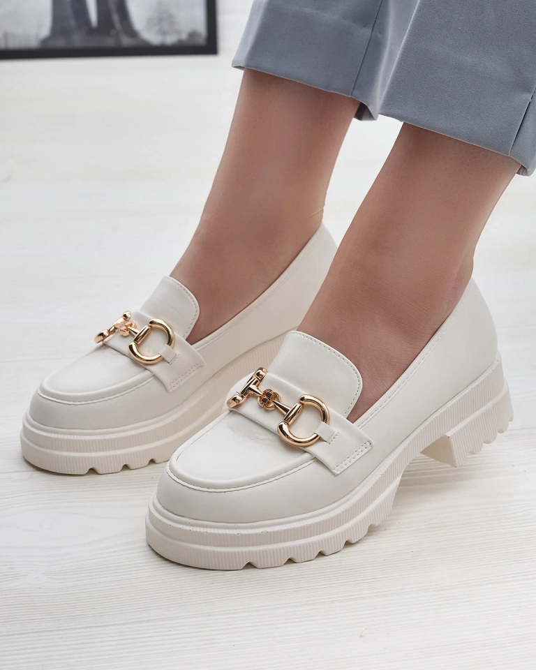 Balti moteriški mokasinai su aukso spalvos dekoru Riasse - Avalynė