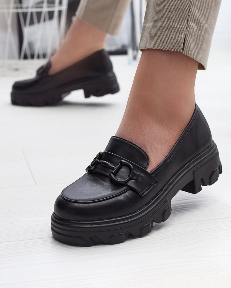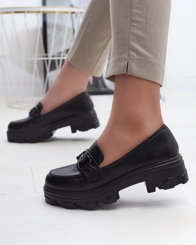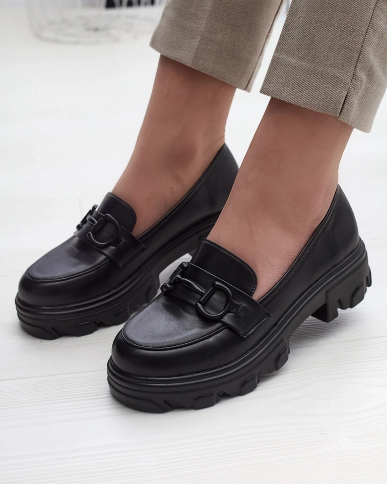 Juodi moteriški mokasinai tvirtu padu Zeleri - Avalynė
