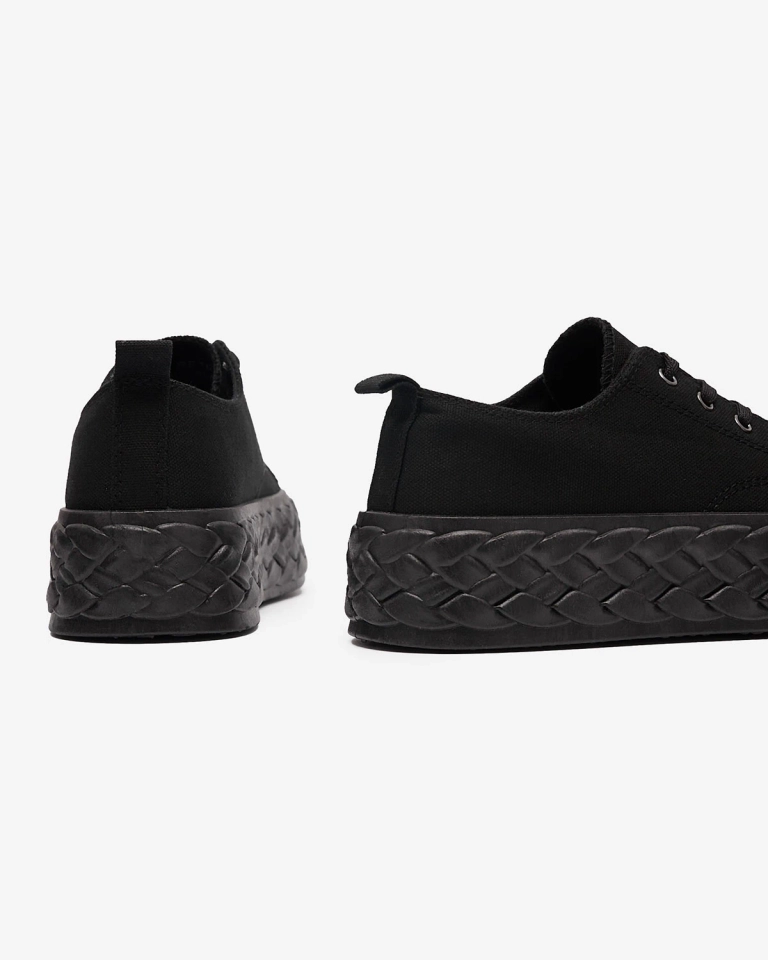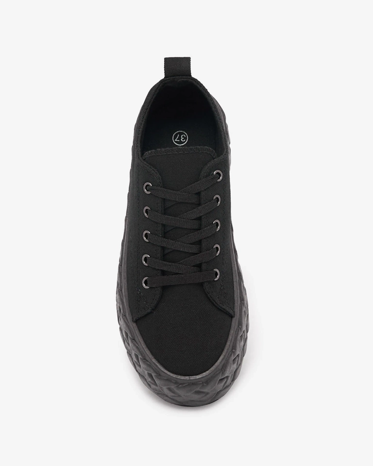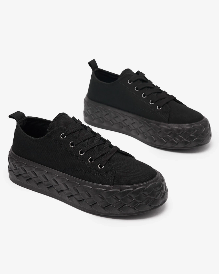 - Moteriški sportiniai bateliai, pagaminti tik iš audinio medžiagos. Modelis ant storos platformos. Viršutinė dalis suvarstoma raišteliais. Jie puikiai tiks prie kasdienio stiliaus!