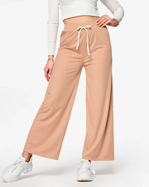 Rudos moteriškos plačios klostuotos palazzo kelnės - Apranga