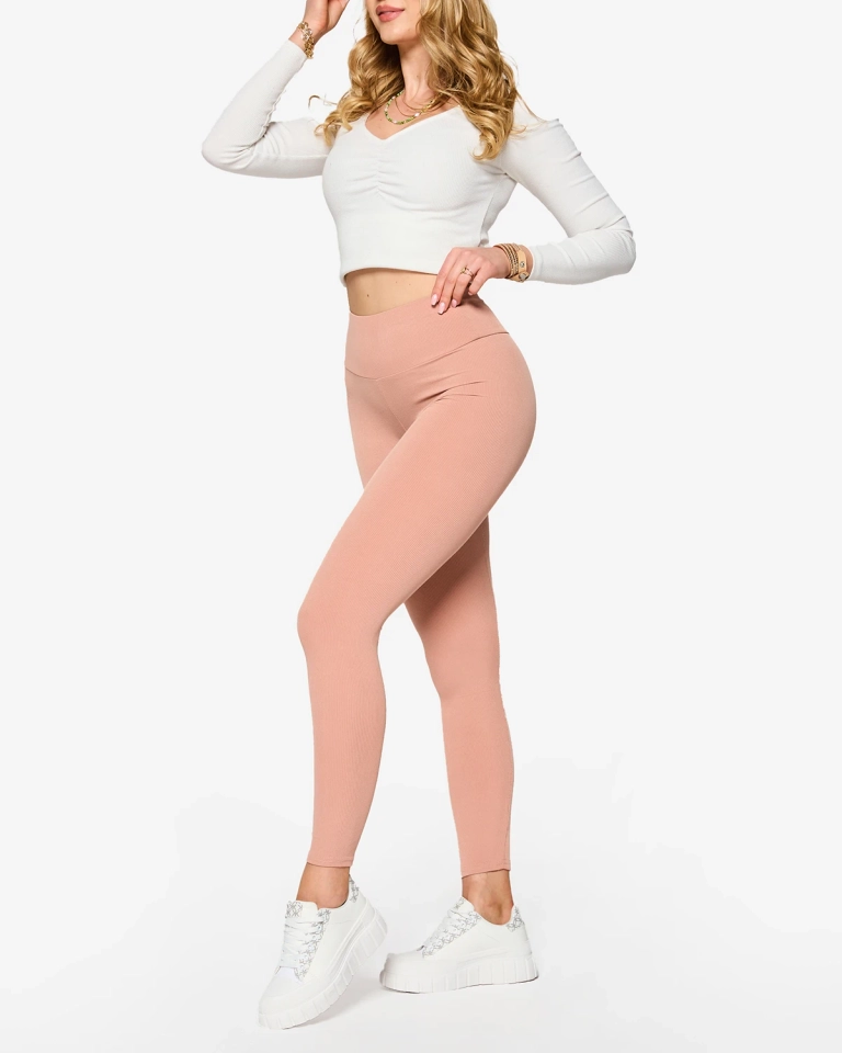 Rausvos spalvos moteriškos leginsai su briaunelėmis - Apranga