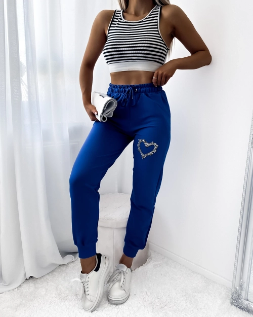Moteriškos mėlynos sportinės kelnės su cirkonių papuošimais - Apranga