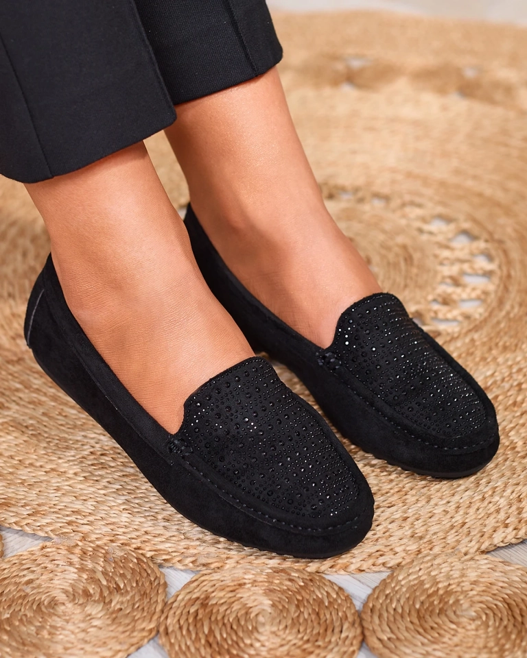 Juodi moteriški mokasinai su cirkonais Bretika - Avalynė