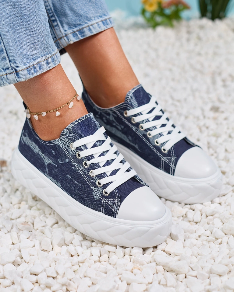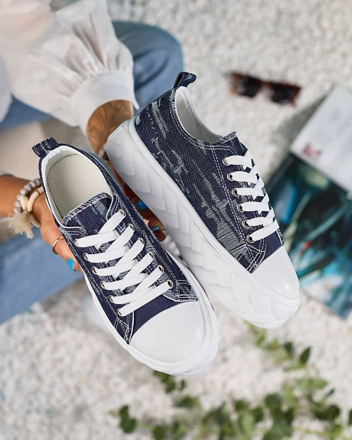 Royalfashion Navy blue moteriški džinsiniai sportbačiai su trintu Nerolera