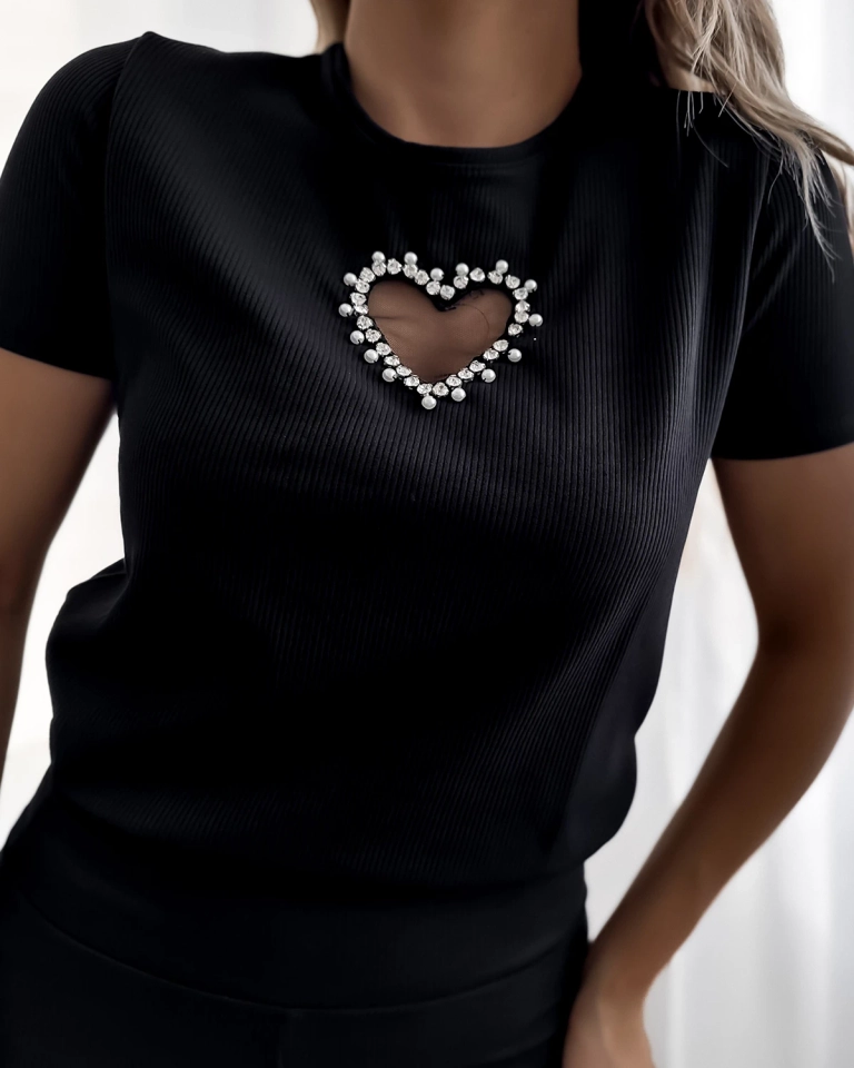 - Unikalus moteriškas sportinis rinkinys, pagamintas iš elastingos briaunuotos medžiagos. Ant marškinėlių ir tamprės madingos širdelės su tinkleliu ir kristalais. Tamprės turi platų elastinį juosmenį. PASTABA: matavimo tikslumas (+/-) 1 cm.