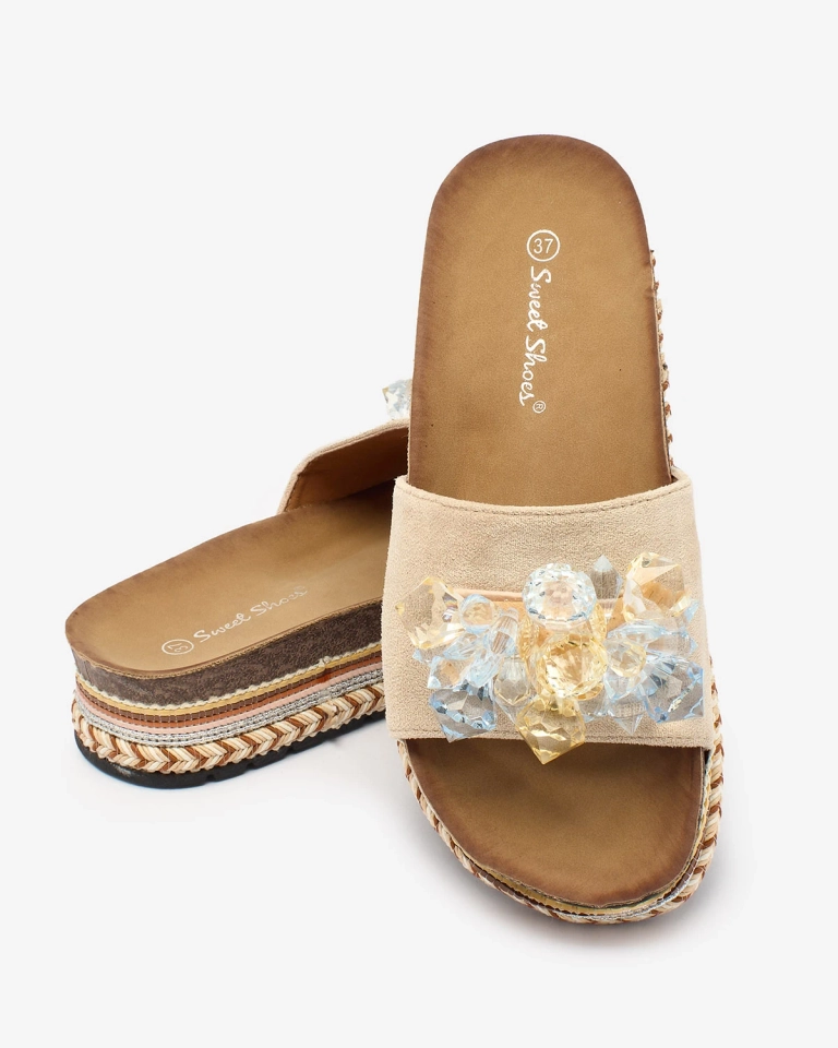 Royalfashion Smėlio spalvos moteriškos šlepetės su kristalais Bollah