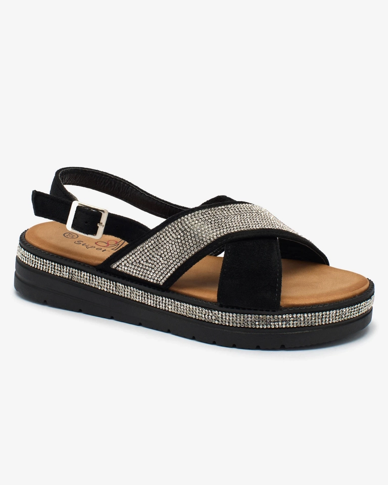 "Royalfashion" Juodi moteriški ekovamzos sandalai su cirkonais "Trikys"