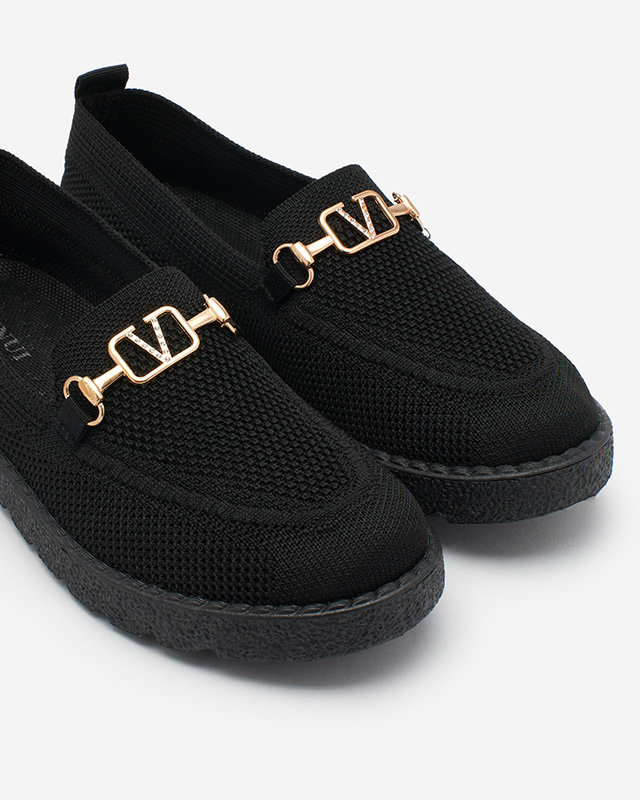 Royalfashion Juodi moteriški medžiaginiai mokasinai su aukso puošyba Ertica