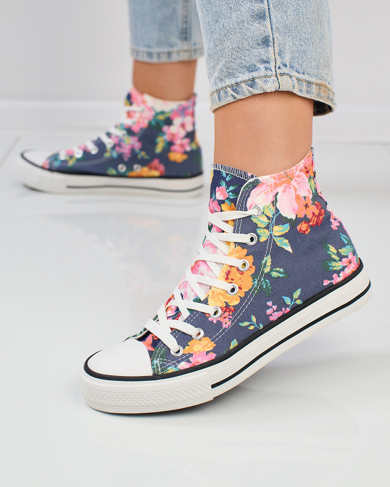 Royalfashion Moteriški aukšti tamsiai mėlyni sportbačiai su spalvingu gėlių raštu Fahenna